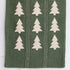 Embroidered Tree Table Runner. The rich green background provides a perfect backdrop for the charming beige stitching and appliquéd trees, creating a festive and elegant look for your holiday gatherings. Made from durable cotton, this runner adds a touch of natural warmth and handcrafted detail to your dining space.- Features beige embroidered trees stitches